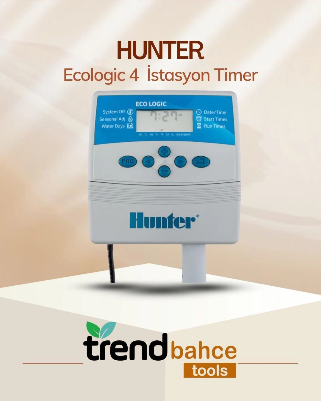Eco-Logic control ünitesi tuş takımı ile kolay programlama, Hunter Quick Check, her birinin dört başlangıç zamanı olan iki bağımsız program, 365 günlük takvim, mevsime göre ayarlama (%10 - %150),hava durumu sensör uyumluluğu ve Easy Retrieve Memory (Kolay Erişilebilir Hafıza) gibi müthiş özelliklere sahiptir.