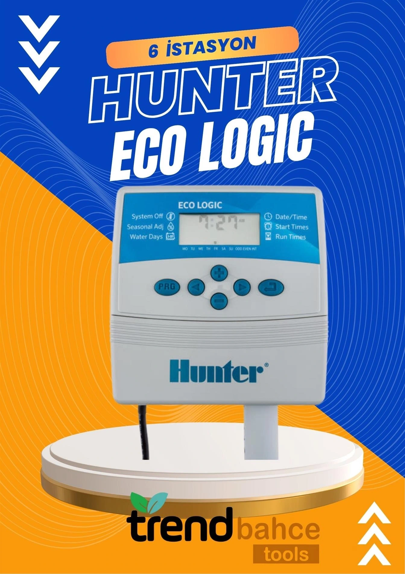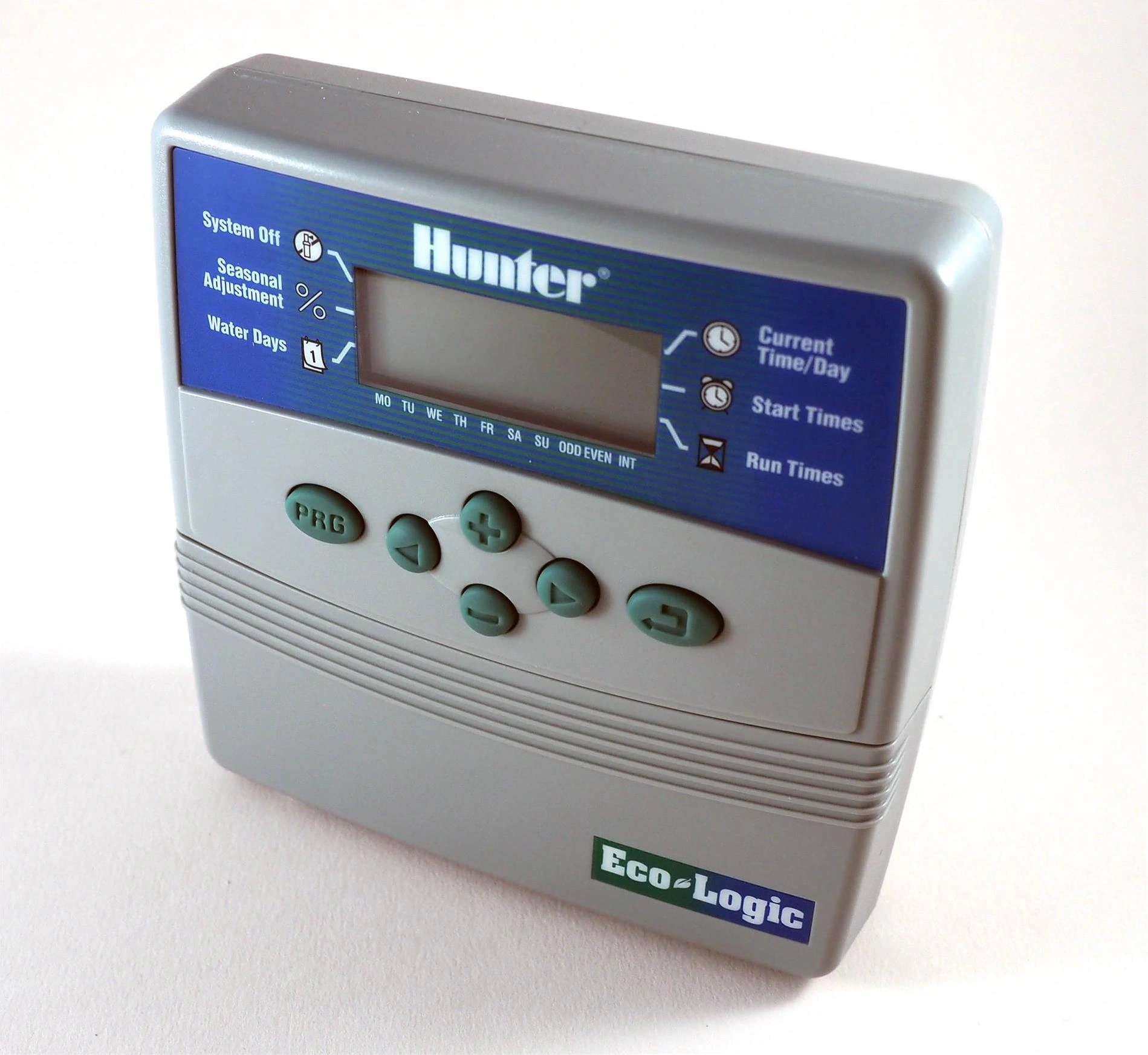 Eco-Logic control ünitesi tuş takımı ile kolay programlama, Hunter Quick Check, her birinin dört başlangıç zamanı olan iki bağımsız program, 365 günlük takvim, mevsime göre ayarlama (%10 - %150),hava durumu sensör uyumluluğu ve Easy Retrieve Memory (Kolay Erişilebilir Hafıza) gibi müthiş özelliklere sahiptir.