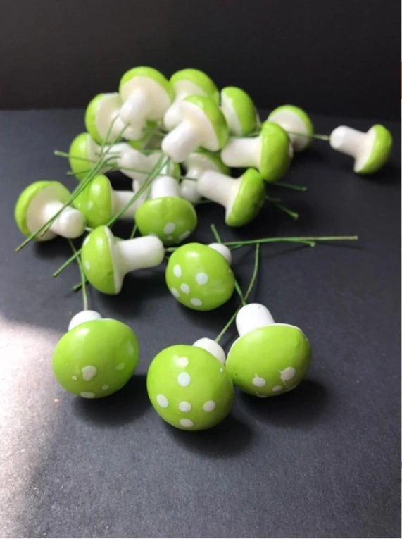 Yeşil Beyaz Mantar Teraryum Minyatür Süsleme (25 ADET)